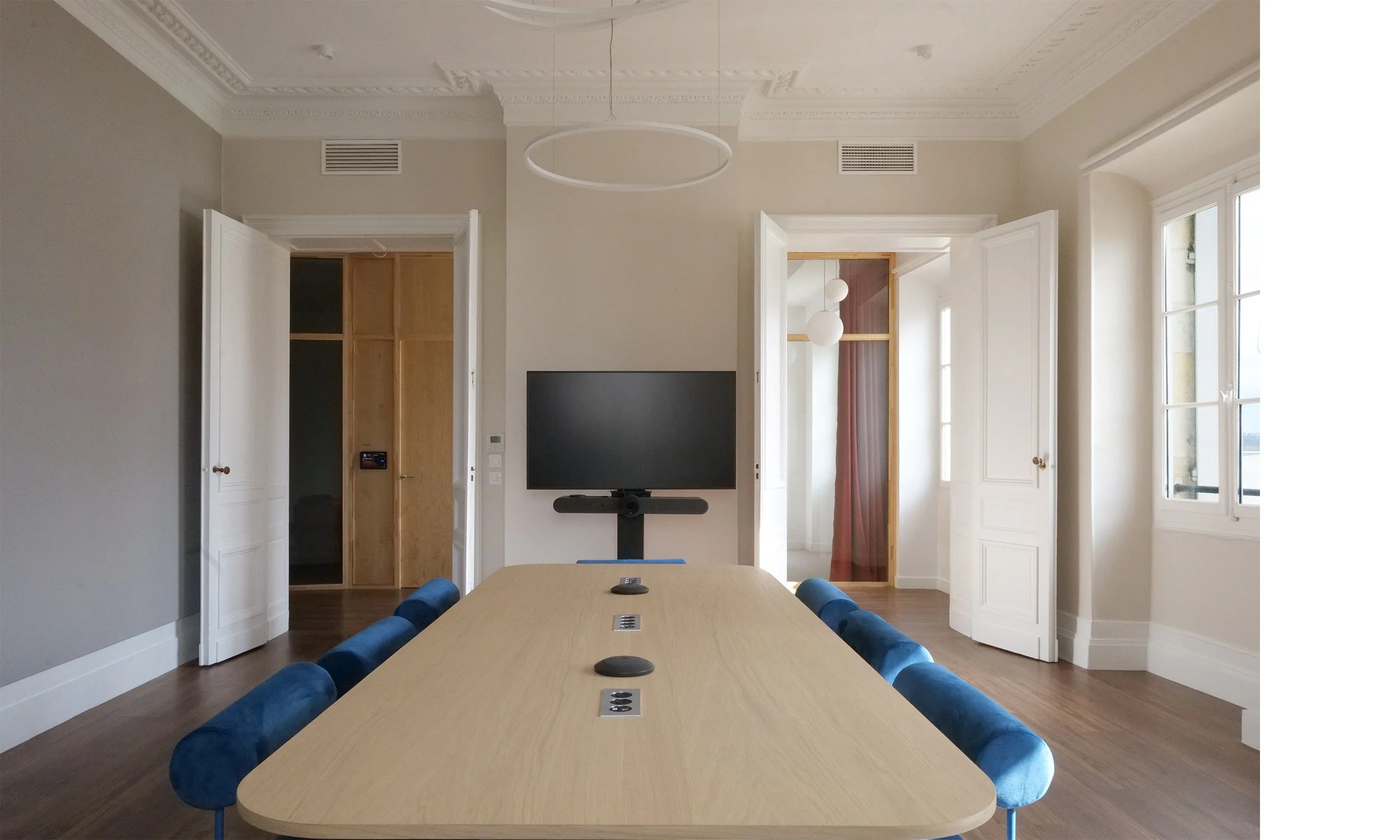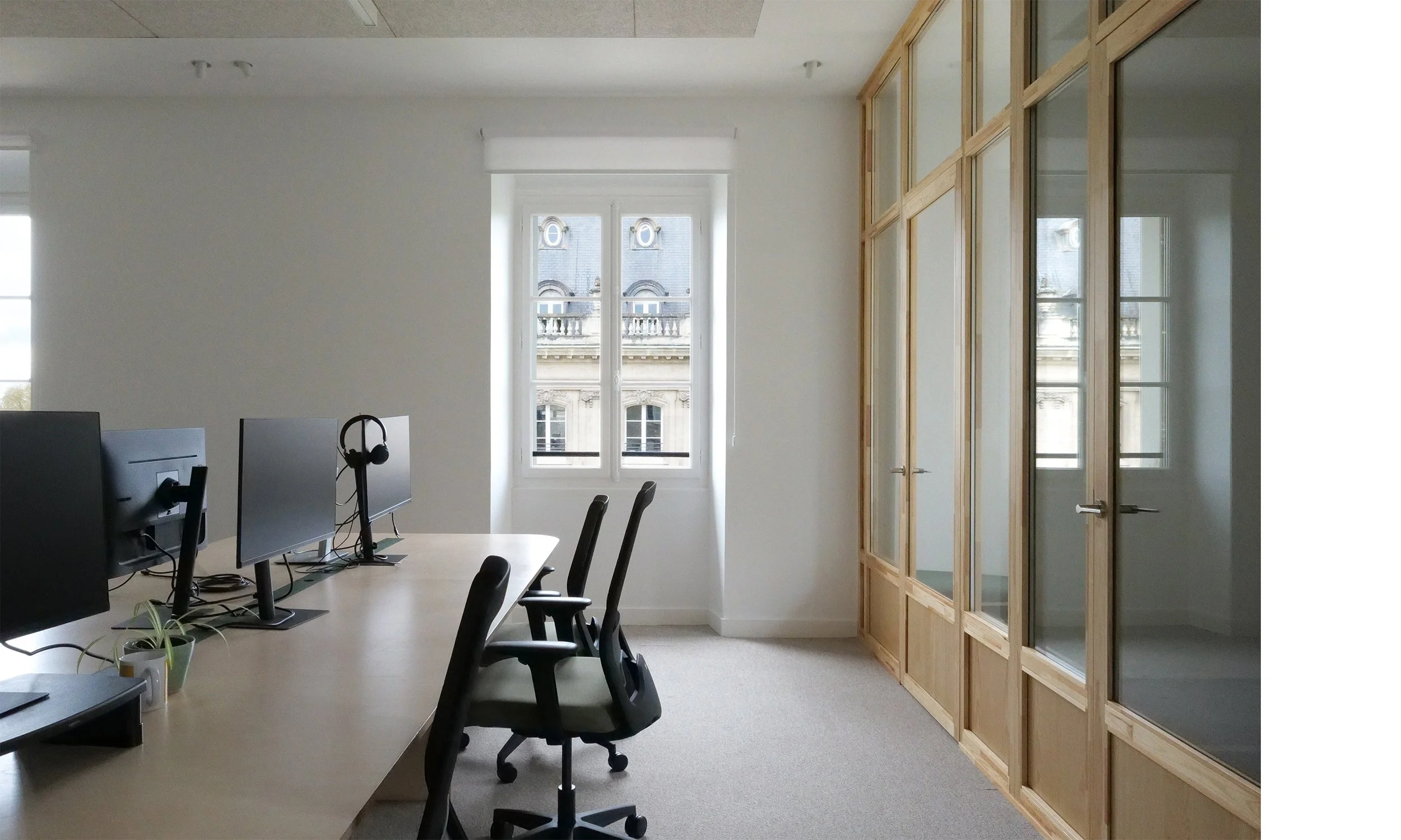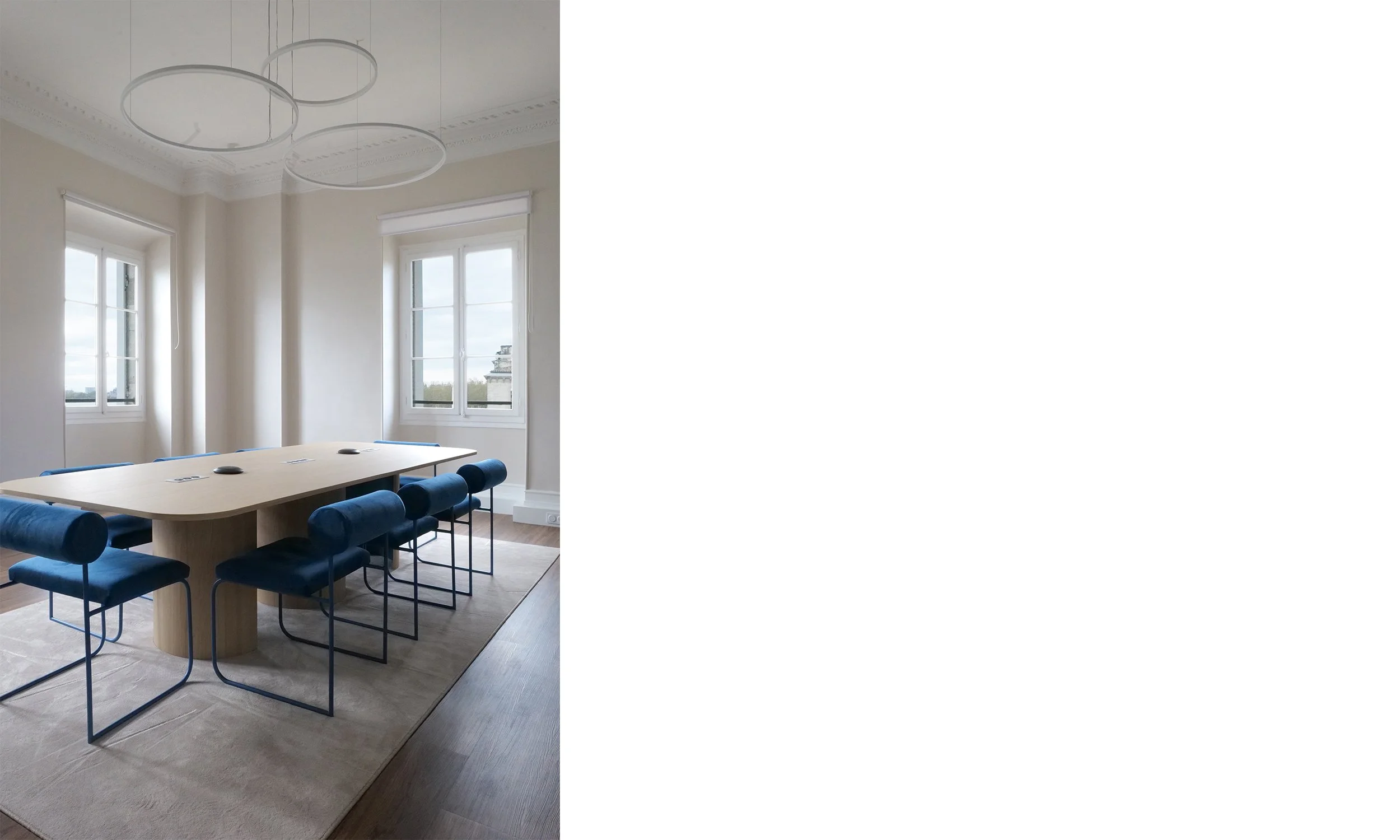Le projet de réaménagement des bureaux d’ekino dans l’hôtel particulier Fenwick visait à réorganiser les espaces tout en mettant en lumière le patrimoine. L’objectif principal était de décloisonner les bureaux existants, qui souffraient de manque de fluidité, afin de créer des espaces ouverts, lumineux et aérés, propices à une circulation facile et un environnement de travail agréable. Une attention particulière a été portée à l’intégration contemporaine dans ce cadre historique, en choisissant des matériaux nobles et en valorisant les caractéristiques architecturales du bâtiment. Les espaces ont été réorganisés pour maximiser les vues et la lumière naturelle, tout en conservant l’âme du lieu.