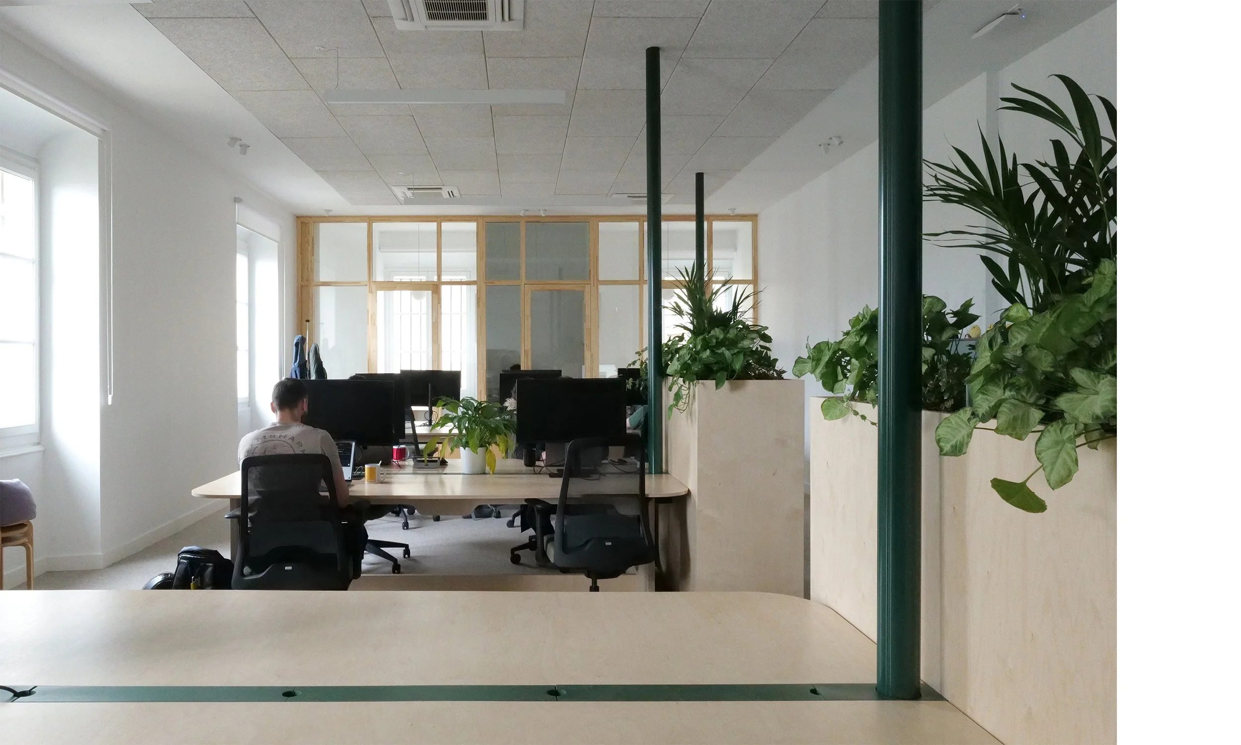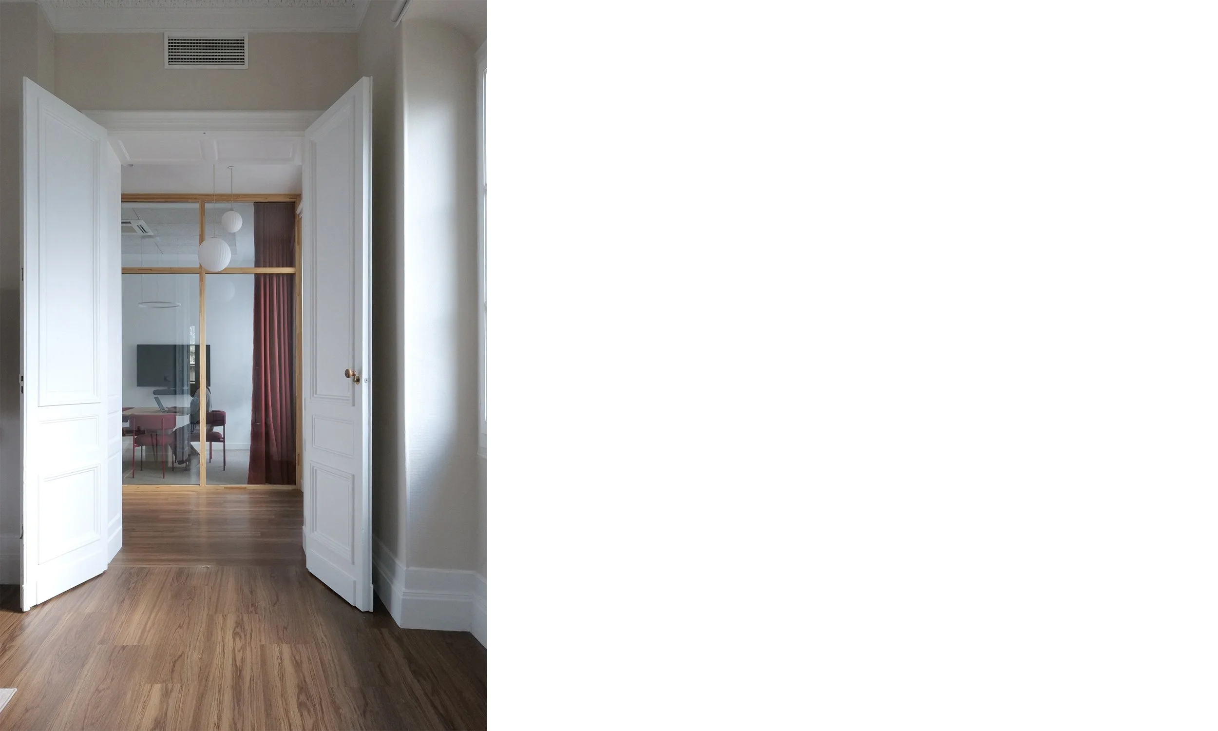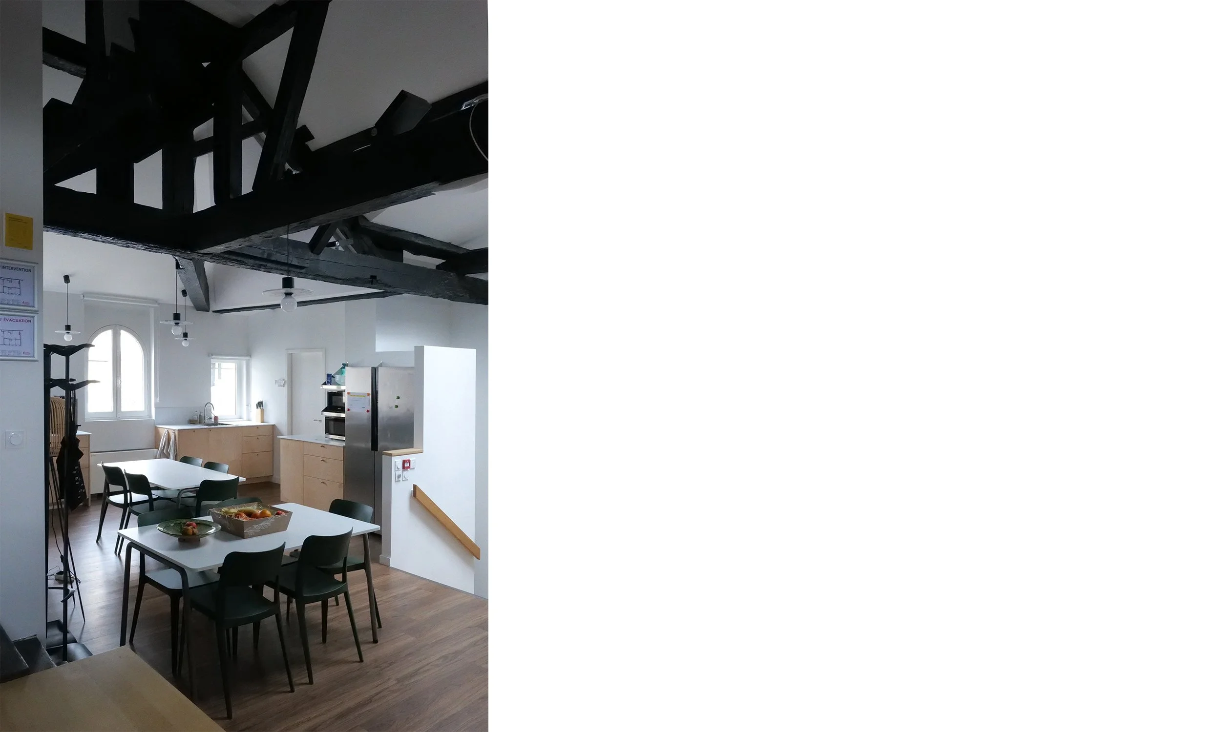 Le projet de réaménagement des bureaux d’ekino dans l’hôtel particulier Fenwick visait à réorganiser les espaces tout en mettant en lumière le patrimoine. L’objectif principal était de décloisonner les bureaux existants, qui souffraient de manque de fluidité, afin de créer des espaces ouverts, lumineux et aérés, propices à une circulation facile et un environnement de travail agréable. Une attention particulière a été portée à l’intégration contemporaine dans ce cadre historique, en choisissant des matériaux nobles et en valorisant les caractéristiques architecturales du bâtiment. Les espaces ont été réorganisés pour maximiser les vues et la lumière naturelle, tout en conservant l’âme du lieu.
